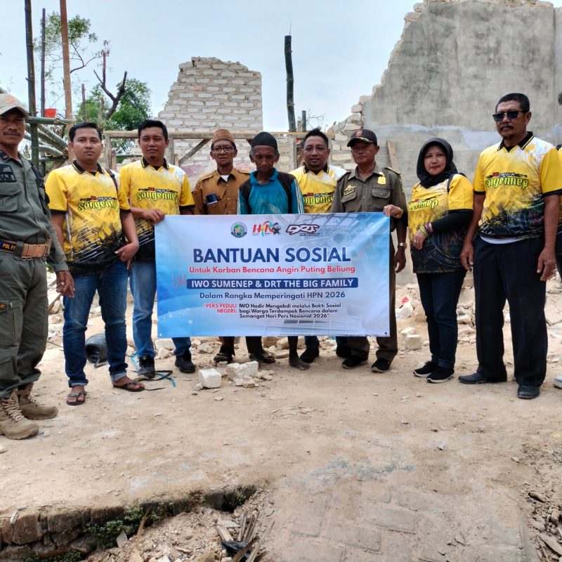 SUMENEP, Suara Madura News– Ikatan Wartawan Online (IWO) Sumenep menggelar aksi peduli terhadap warga terdampak bencana angin puting beliung yang terjadi di sejumlah wilayah Kabupaten Sumenep, pada Hari Minggu 01 Februari 2026 Jam 14.30. Aksi sosial ini dilaksanakan sebagai bentuk empati dan kepedulian insan pers terhadap masyarakat yang sedang tertimpa musibah.