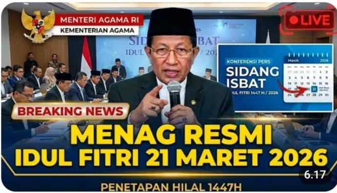 “Berdasarkan hasil sidang isbat dan laporan rukyatul hilal, disepakati bahwa 1 Syawal 1447 H jatuh pada Sabtu, 21 Maret 2026,” ujar Menteri Agama dalam konferensi pers.